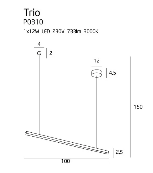 Trio 1 Dimmable Pendant Lamp Black P0310D